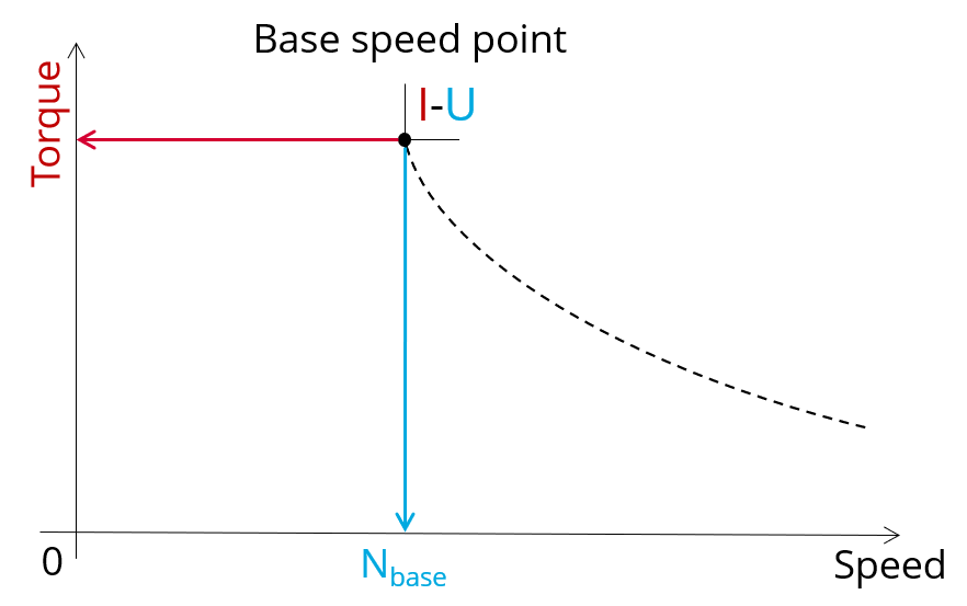 The base point of the torque-speed curve is defined by considering the targeted input values I, U (Voltage, current). Then, this test allows deducing the performance for this working point.