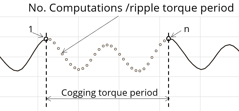 The user input “ No. comp. / ripple period ” (Number of computations per ripple torque period) influences the accuracy of results (computation of the peak-peak ripple torque) and the computation time.