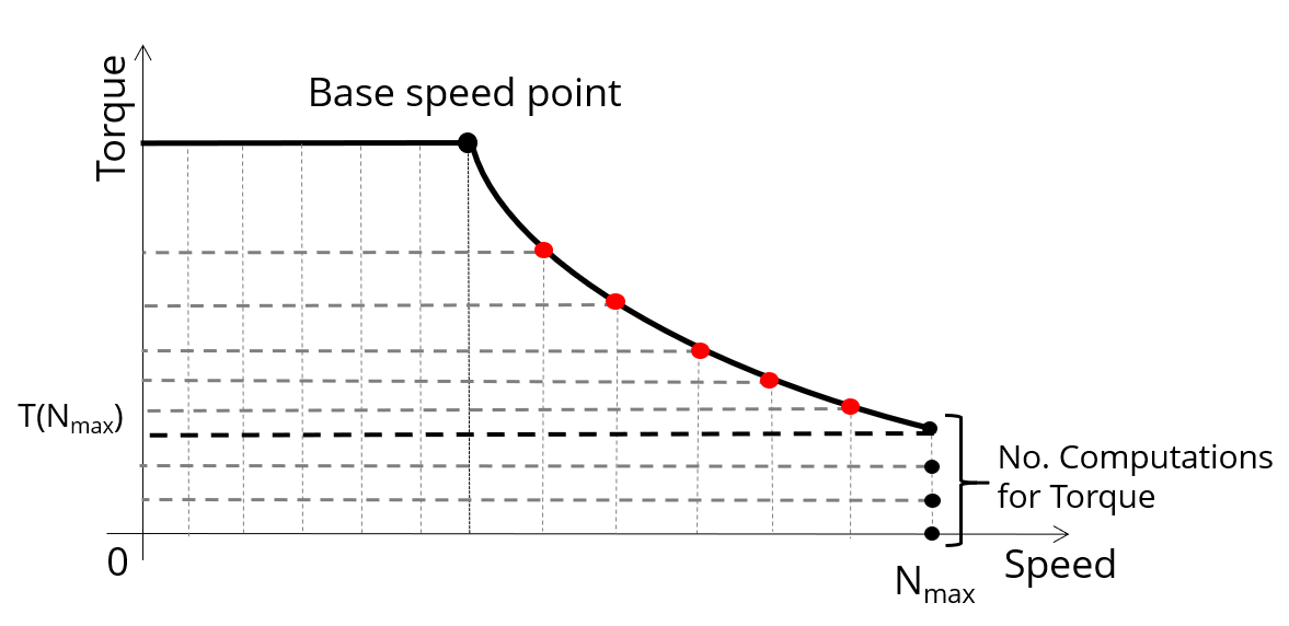 For the speed range [N base ; N max. ], the number of computations for torque is imposed by the number of computations for speed in the speed range [N base ; N max. ] (Red points in the image shown below).