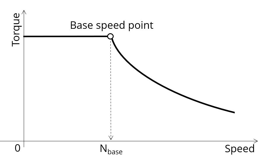 In the results, the performance of the machine at the base point (base speed point) and at the maximum speed (maximum speed point), set by the user are presented.