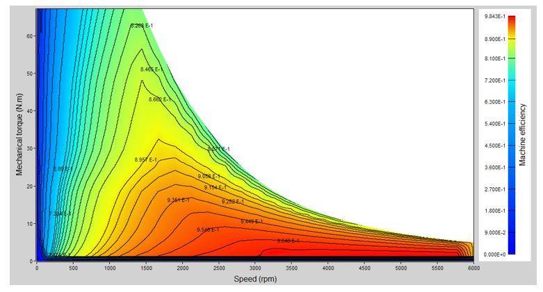 A set of curves (like Torque-Speed curve) and maps (like Efficiency map) are computed and displayed.