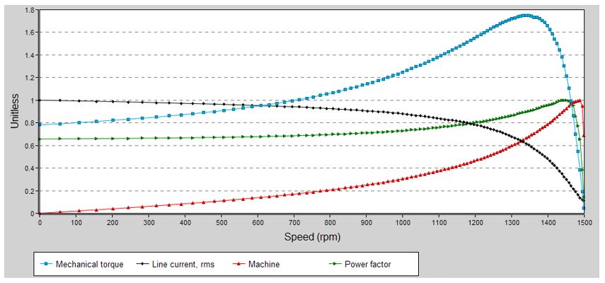 The four main user input parameters are “the maximum Line-Line voltage, the rated power supply frequency, the maximum line current and the maximum speed”. In addition, temperatures of winding, and squirrel cage must be set, and the power electronics data if needed.