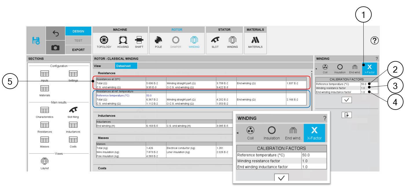 By using the parameters in the X-factor section, the resistance of the winding and the inductance of the end winding can be adjusted to match their measured values at a given temperature.