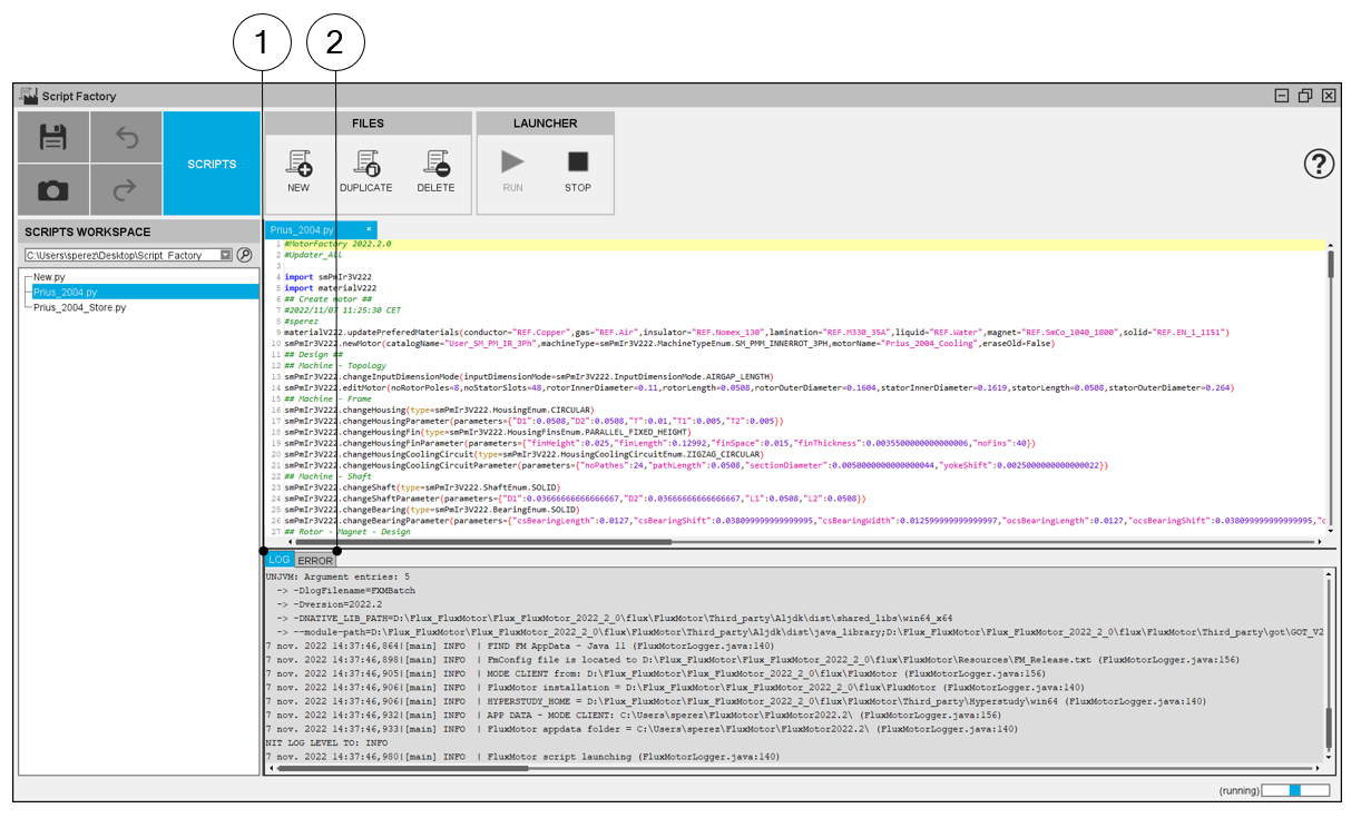 | LOG and ERROR tabs | |