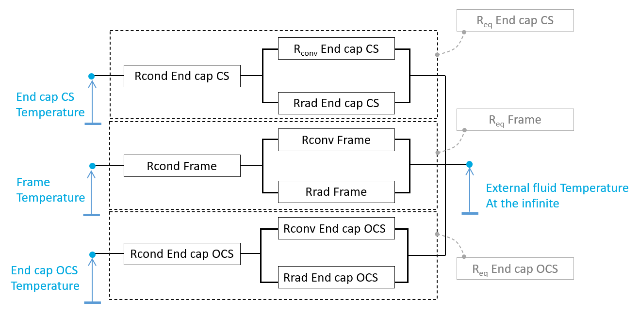 | The global resistance between the frame and the external fluid - Thermal resistance network |