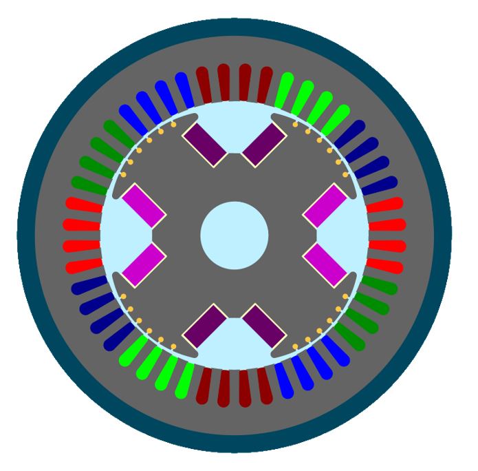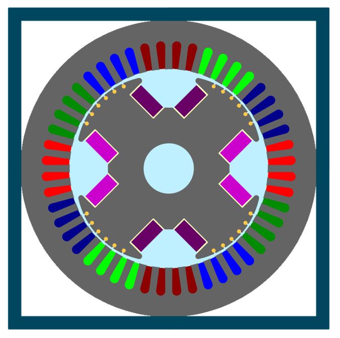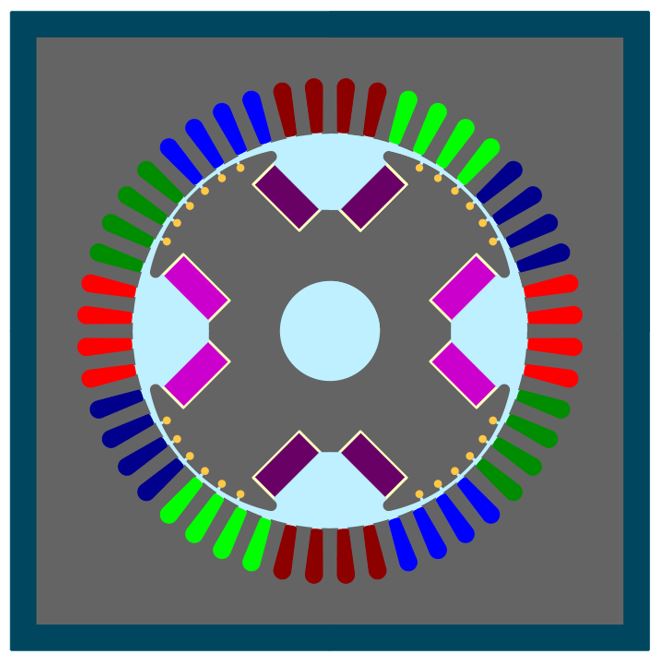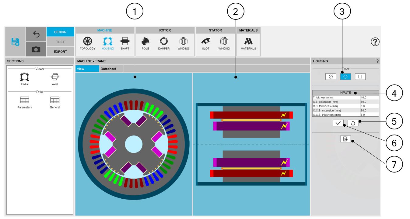 | 1 | Radial view of the motor, including the housing topology and dimensions. |