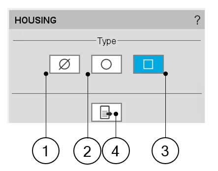 | 1 | Default setting : Housing type is « None ». The machine has no frame. |