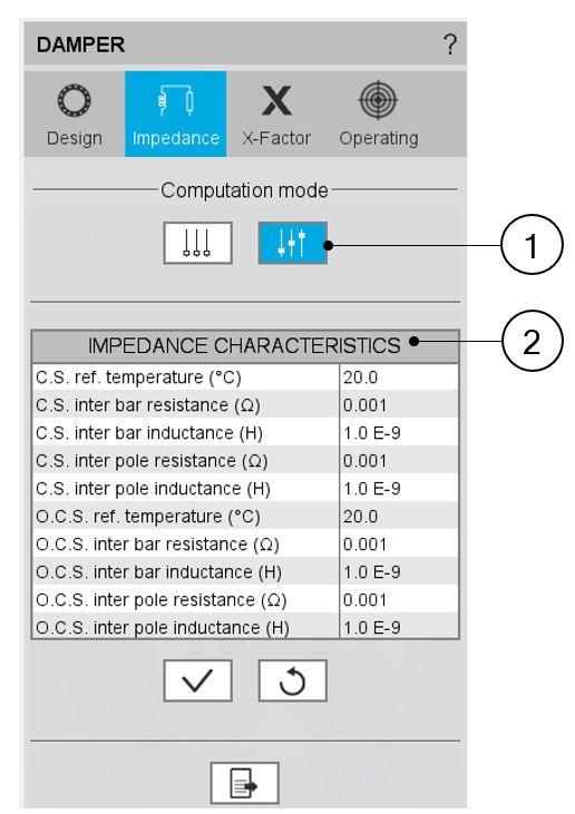 When constant computation mode is set, the inter-bar and inter pole end-ring resistance and inductance values must be set by the user. The values are given for a reference temperature. In this case the inter bar end ring resistances and inductances are always a function of temperature (function depending on the material of the end-ring). Once again, the inter bar impedance can only take an average value, even if bars are not evenly distributed.