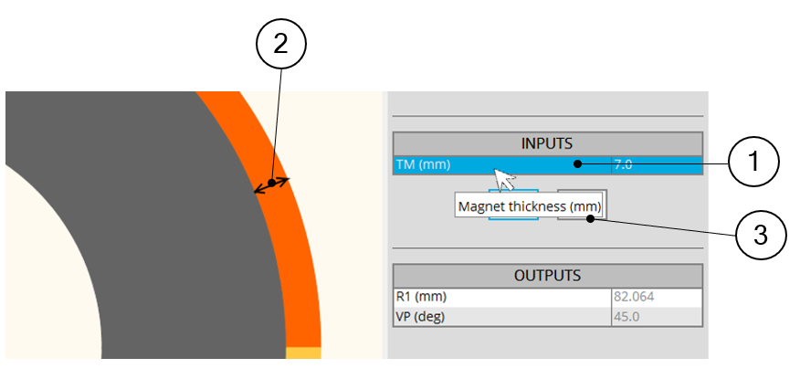 | 2 | Selection of a parameter label displays the corresponding arrow on the picture. |