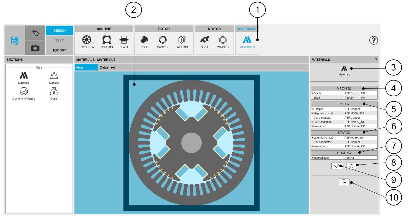 | 5 | Area to assign materials to rotor regions (magnets, magnetic
