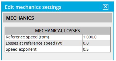 | User inputs for defining the mechanical losses |