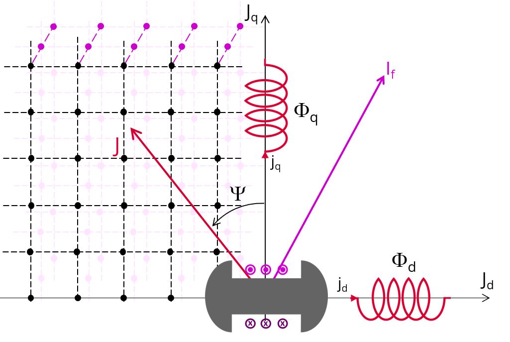 - Field current flux and cross effect flux curve versus Jq