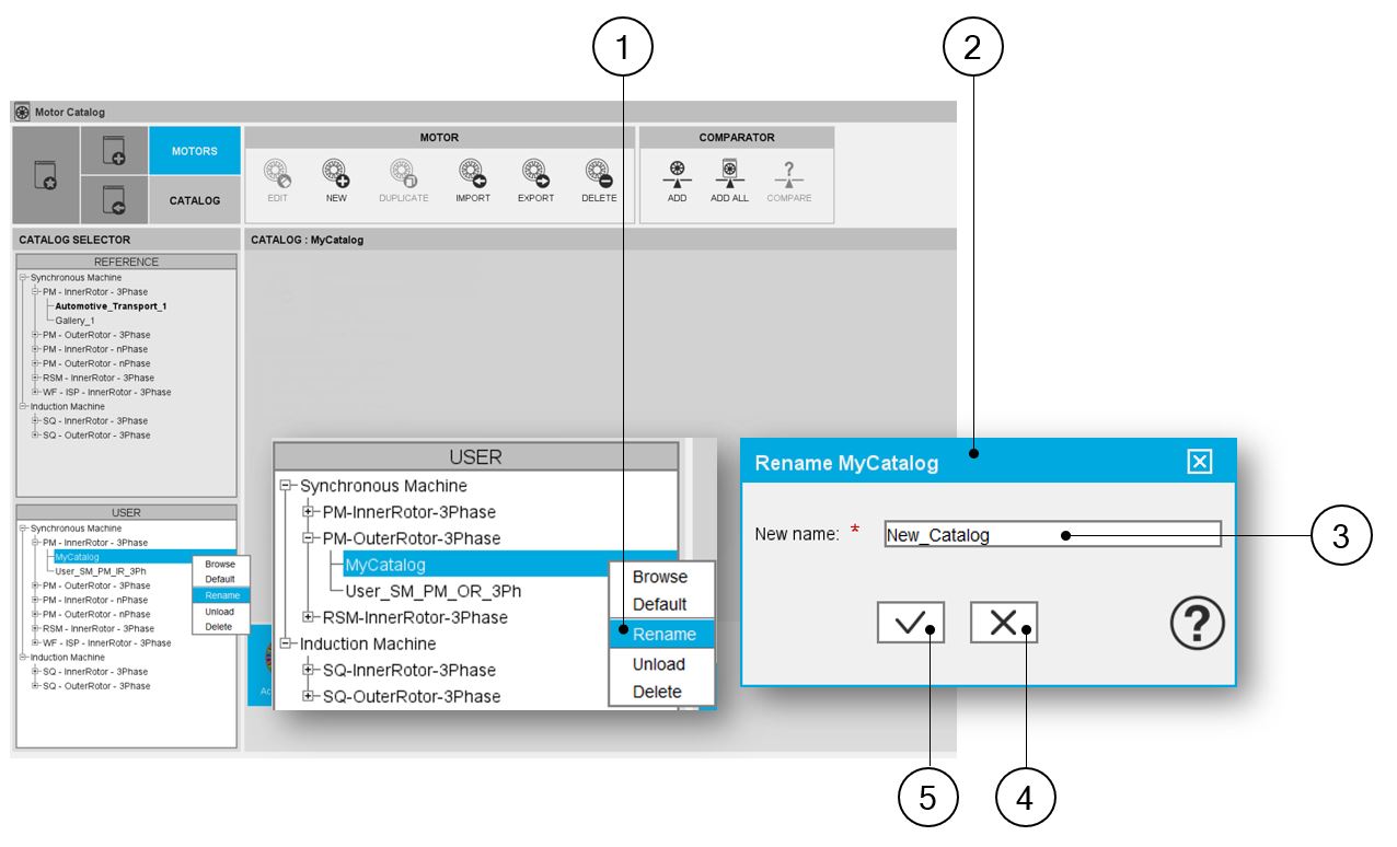 | 3 | Give a new name to the selected catalog (a name which is not already used in Motor Catalog). |