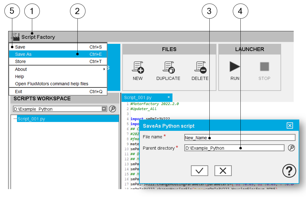 In Script Factory application, an edited python file can be saved with a new name (Save
