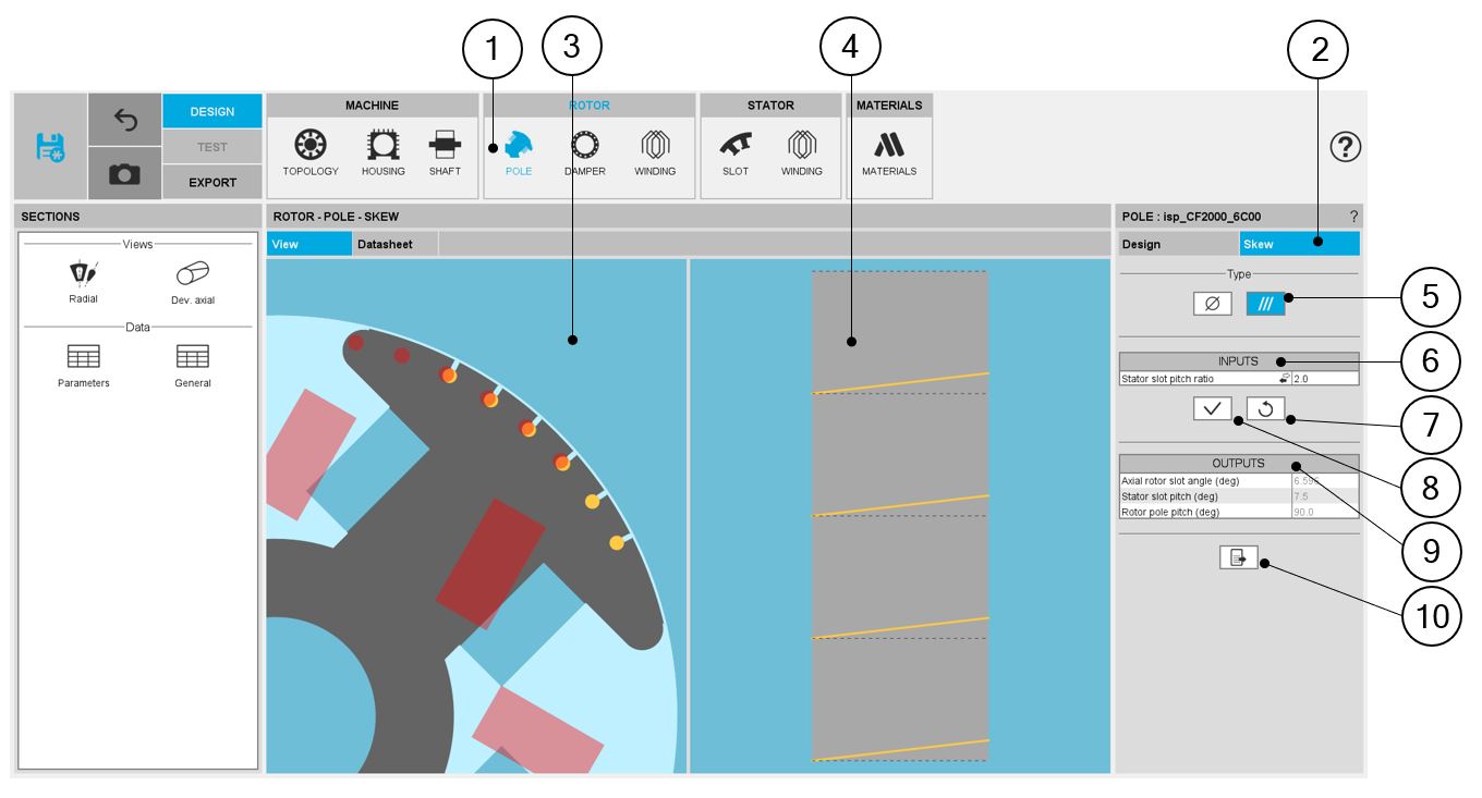 | 3 | Visualization of the machine radial view to visualize the pole skew |