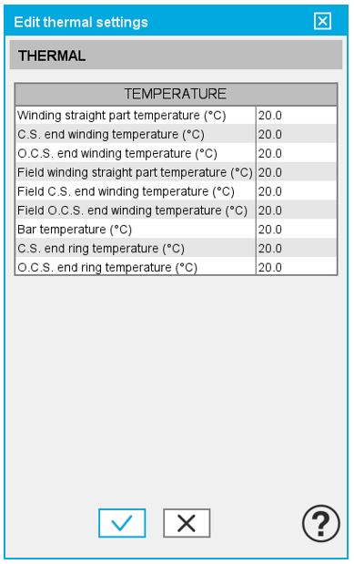 You can define the winding temperatures, bar and end ring temperatures or define the physical properties of the materials needed to run the tests without any thermal computation.