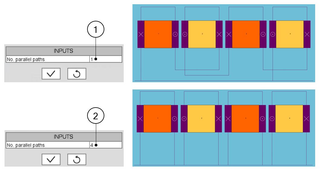 Number of parallel paths: The possible numbers of parallel paths are automatically computed and proposed to the user. When the user selects the number of parallel paths, the connections on the winding scheme are automatically updated. See examples below. |