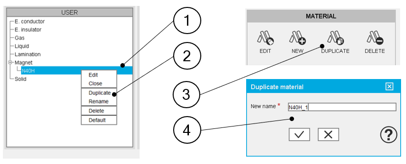 4 | Select the new name of the new material in the dedicated dialog box and accept the duplication. |