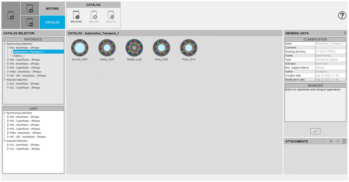 CATALOG area of the Motor Catalog - Refer to the chapter: Motor Catalog – Management of catalogs |