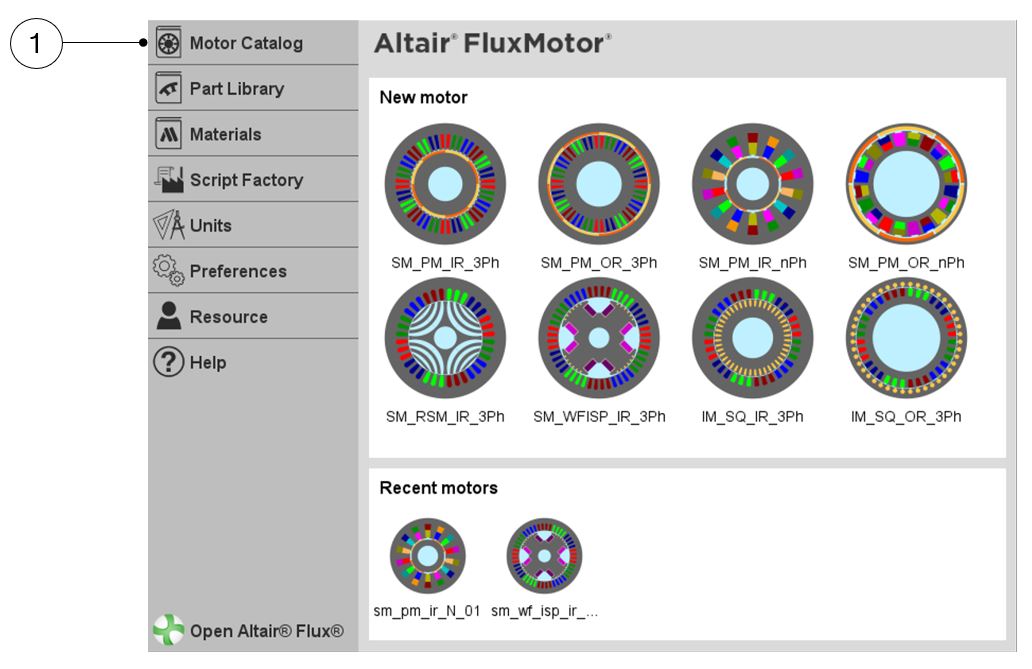 - The MOTORS area to visualize and manage all the motors stored in the selected catalogsTo reach one of these area, just click on the corresponding button.