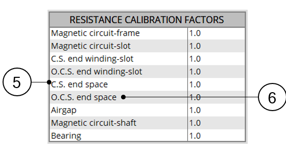 4 | Opposite Connection Side end winding – slot. This calibration factor tunes the conduction resistance between the slots (meaning In-slot winding) to the Opposite Connection Side end winding. |