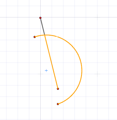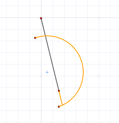 図 2. 交差ポイント近くのエンティティ"B"(円弧)をクリックする