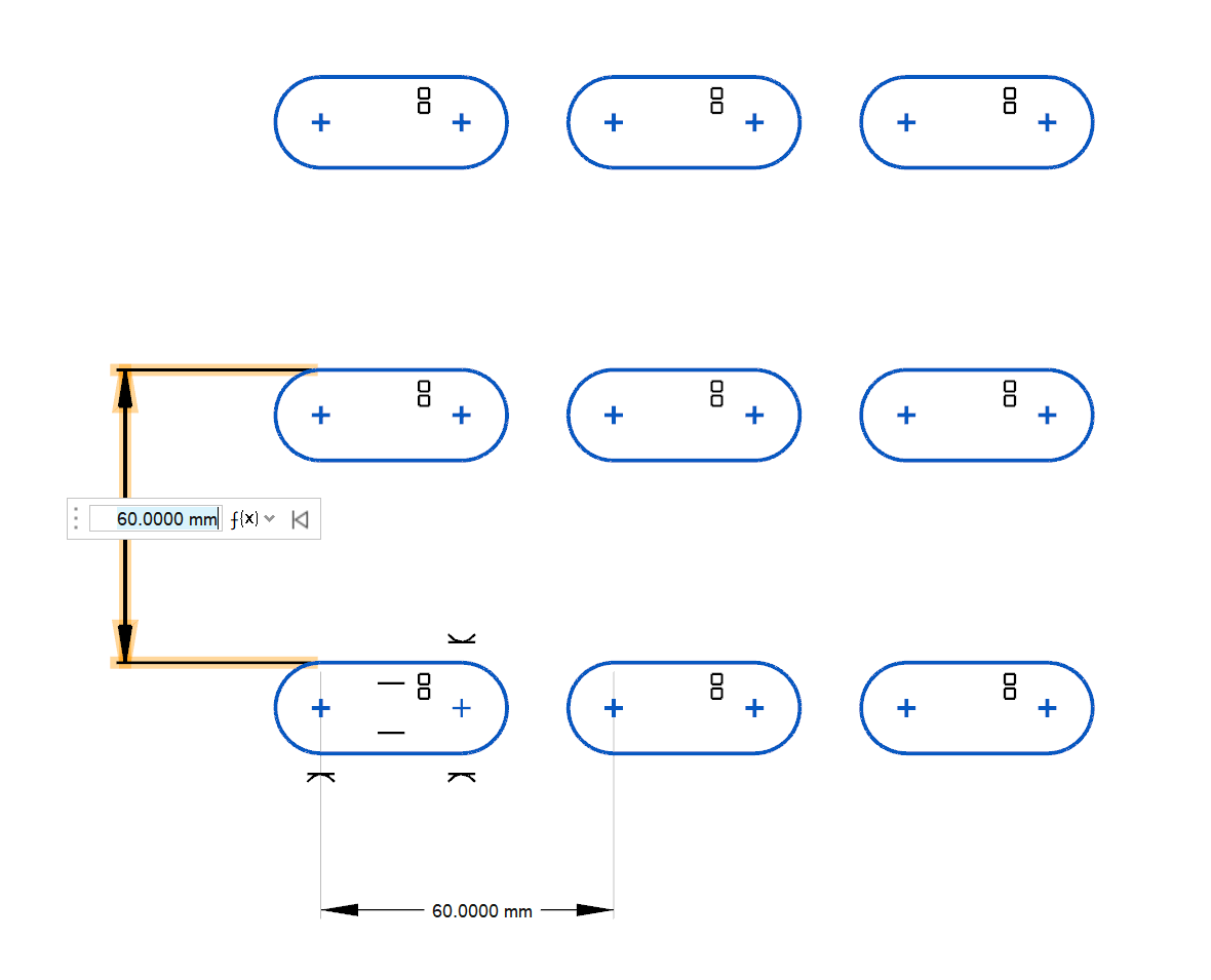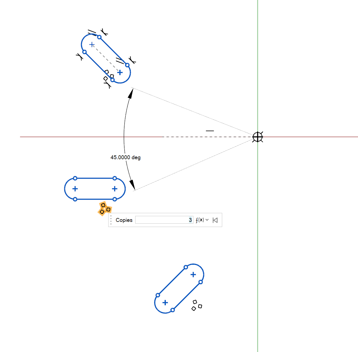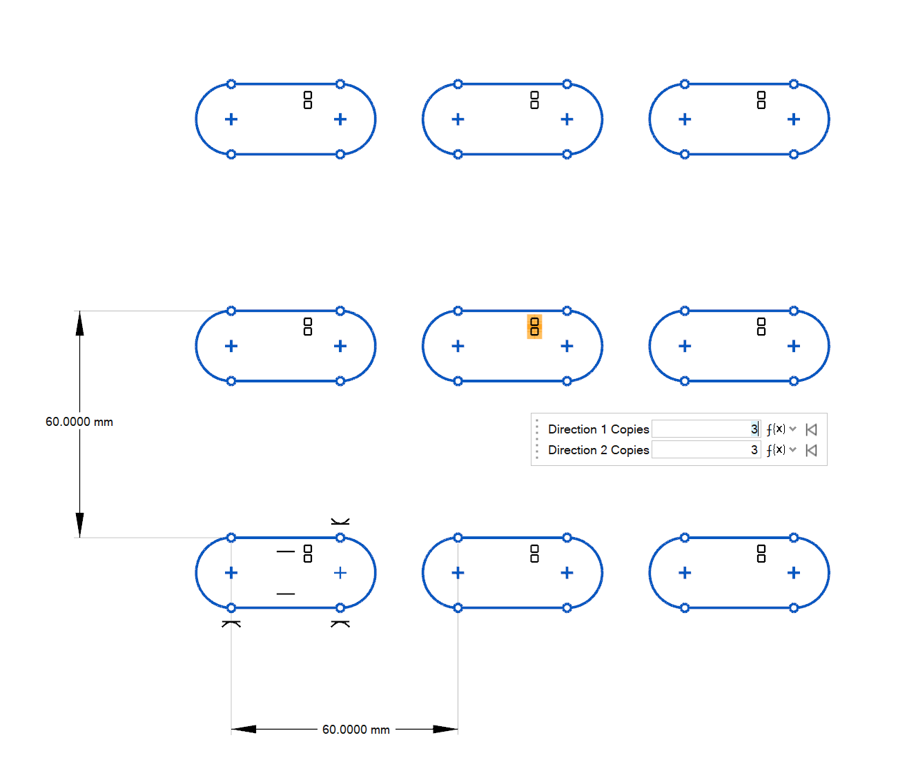 コピー数を変更する スケッチ制約グリフをクリックし、コピー数を入力します。