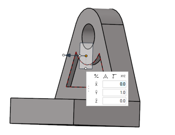 面の選択が確定すると、選択したエンティティは、指定された面に点線のコンストラクションラインとして投影されます。図 3.