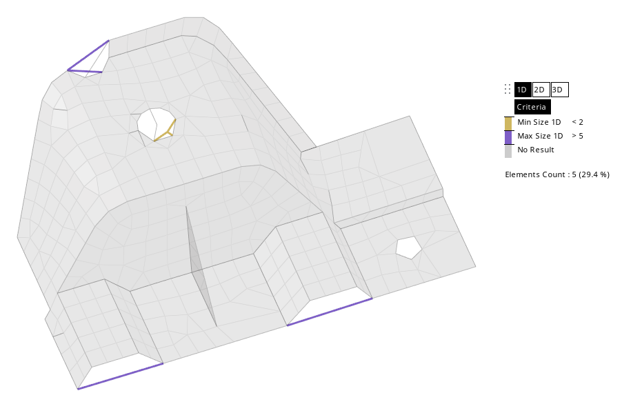- Min Size 1D:指定した値より小さい要素が、lengthをクリックするとハイライト表示されます。これらの要素は、ツールを終了するか、もしくは別のチェック要素機能を選択するまで、ハイライト表示のままとなります。