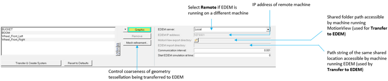 - EDEM にジオメトリを転送して EDEM システムを作成するには、MotionViewでEDEM GUI とカップリングサーバをオンにして、