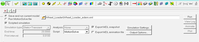 - MotionSolveのH3DをHyperViewのウィンドウに読み込むには、MotionViewのRunパネルにあるAnimateボタンを使用します。