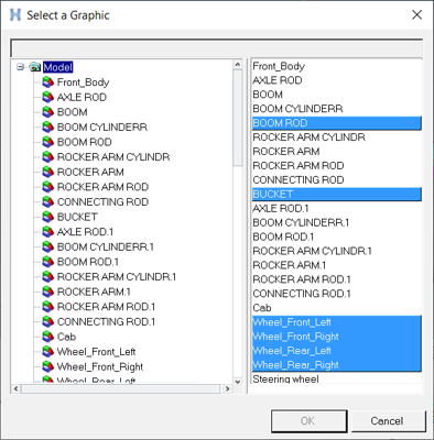 ヒント: 複数のグラフィックスを同時に選択するには、Select a Graphic/Bodyダイアログを使用します(以下のダイアログを表示するには該当のコレクターをダブルクリックします)。