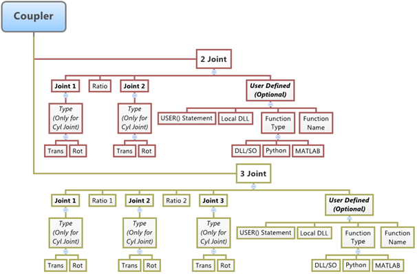 Couplerエンティティは、2つまたは3つのジョイントの自由度の間の代数的関係を定義します。