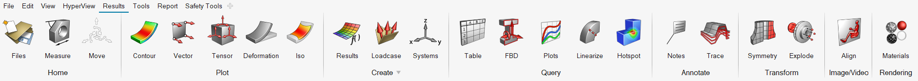 HyperViewの上部にあるHyperView Resultsリボンからは、ツールや標準機能に素早くアクセスすることができます。アイコンをクリックすると、関連ツールが開きます。図 1.