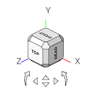 主要な面(上、下、右、左、後、または前)をクリックすると、その面の最も近い向きにモデルが回転します。その向きが標準でない場合は、その面をもう一度クリックすると、モデルが標準の向きに再配置されます。向きがすでに標準になっている場合、主要な面を繰り返しクリックすると、ビューが反転します。