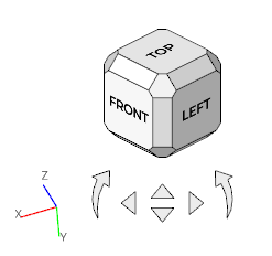矢印をクリックすると、ビューが徐々に回転します。左クリックと右クリックで+15度と-15度ずつ回転し、中央ボタンをクリックすると90度ずつ回転します。