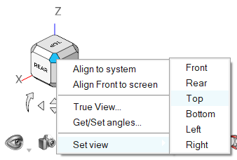 ビューキューブをローカル座標系または画面ベクトルに合わせるには、キューブ上で右クリックします。