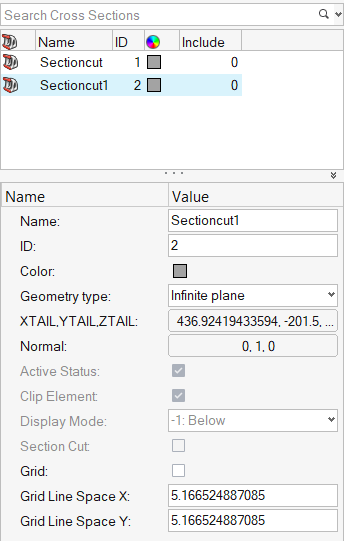 断面を作成するとCross Sectionエンティティとしてモデルブラウザに追加されます。その基本パラメータは、エンティティエディターで変更できます 。ツールで断面を編集および調整するには、Section Cutsダイアログで右クリックし、Editを選択します。図 3.