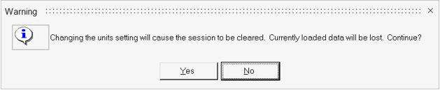 単位が有効になっていない場合に有効化するためにFile > Preferencesダイアログ に戻ると、HyperGraphセッションはクリアされます。下に示すようなメッセージが表示されます。Yesをクリックし、単位を有効としてセッションをクリアします。