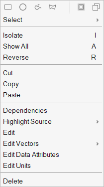 - HyperGraph内のどのカーブについても、コンテキストメニューは表示されます。ただし、このフィーチャーについてのメニューオプション群は、上記のファイルタイプにのみ機能します。サポートされていないファイルの場合は、一致するエンティティが見つからなかったことを示すエラーメッセージが表示されます。