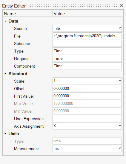 - Enable/Change Curve Unitダイアログを表示します。ここでは、xおよびyベクトルについて、新しいユニットタイプを選択することができます。詳細については、単位の有効化を参照してください。