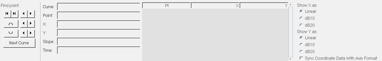 アクティブウィンドウ内の任意のカーブ上にある個々のポイントのデータを取得します。ポイントが選択されると、パネル上にポイントデータが表示されます。