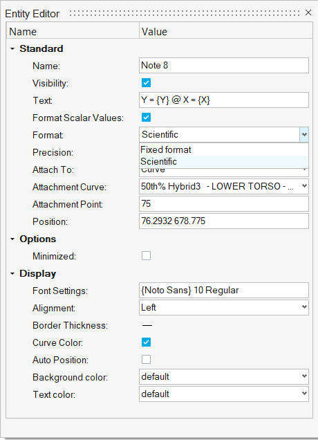 - FixedまたはScientificフォーマットを使って注釈内のスカラー値をフォーマッティングするには、このオプションを選択します。フォーマットのタイプはFormatドロップダウンメニューから選択できます。