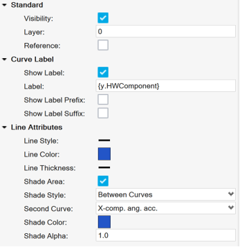 カーブと任意のシェーディング上のグリッドラインの表示 / 非表示を選択することもできます。視認性を高めるためには、参照カーブを使用できます。例えば、境界の可視化に参照カーブを用いることが可能です。これは、Autofit(例えばEuroNCAPレポート内)からは境界が除外されるためです。