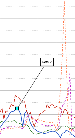 マウスが注釈から離れると、アイコンが再度表示されるようになり、注釈は消えます。これにより注釈の表示の柔軟性が大いに高まり、複数の注釈が含まれるプロットが見やすくなります。またこのオプションは、カーブに付着した注釈の付着点が見えなくなることを防ぎます。プロット内のアイコンの場所は、注釈が付着しているカーブ上のポイントに一致します。このマウスオーバーの設定は、全般設定ではなく、注釈毎に行われます。注釈がマウスオーバーモードにある、もしくは、プロット内にアイコンとして表示されている際、注釈は、公開セッションに表示されるとおりに表示されます。