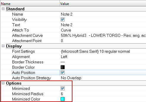 PlotブラウザからNotesを選択し、プロパティテーブル/エンティティエディターからMinimizeオプションを選択すると、"マウスオーバー"をアクティブにすることができます。