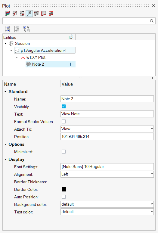 Notesビューは、セッション内の注釈のみを、対応するページおよびプロットフォルダーにグループ化して表示します。注釈をクリックすると、 エンティティエディターに注釈のプロパティが表示されます。