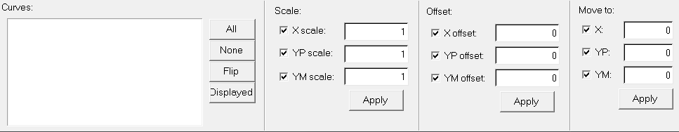 アクティブウィンドウ内のカーブがカーブリストに表示されます。スケーリングまたはオフセットを適用するには、カーブをリストから選択するか、ウィンドウからピックする必要があります。設定は、選択されたカーブにのみ適用されます。選択されたカーブは、リスト内でハイライト表示されます。