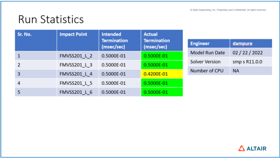 Run Statistics: 衝撃位置ごとに、正常終了とエラー終了のサマリーを実行します: