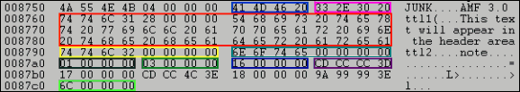 AMFフッターはファイルの末尾にJUNKチャンクとして格納されます(下のHEXダンプを参照)。